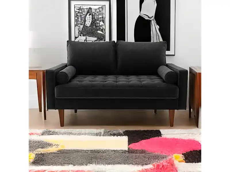 2 -seerer schwarzes Samtsofa, modernes Wohnzimmersofa, mit sich verjüngten Armlehnen und Füßen, einem unteren Rücken – 148,5 x 78 x 85 cm Finale Aktion