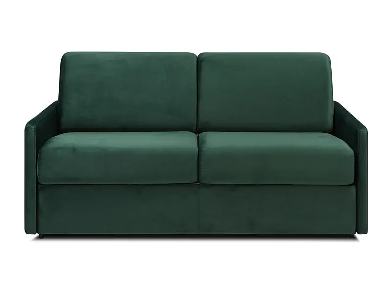 3-Sitzer Schlafsofa Express aus tannengrünem Samt mit Memory-Foam-Sitzfläche – Liegefläche 140 cm – Matratze 22 cm mit Memory-Foam-Sitzfläche CALIFE Preiswert
