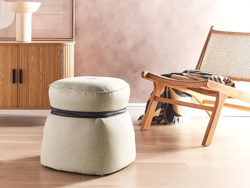 Angebot Pouf Hocker Stoffbezug Leinen beige quadratisch Polsterhocker 44cm hoch Monterey