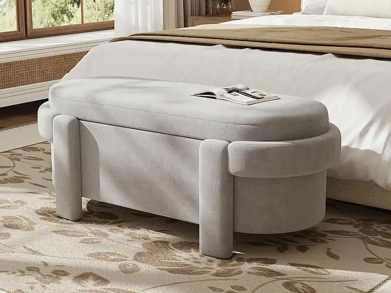 Aufbewahrungsbank 121.5x49x44.5cm – Bezug aus Wollstoff – einzigartiges Design – Grau Preis Gesenkt