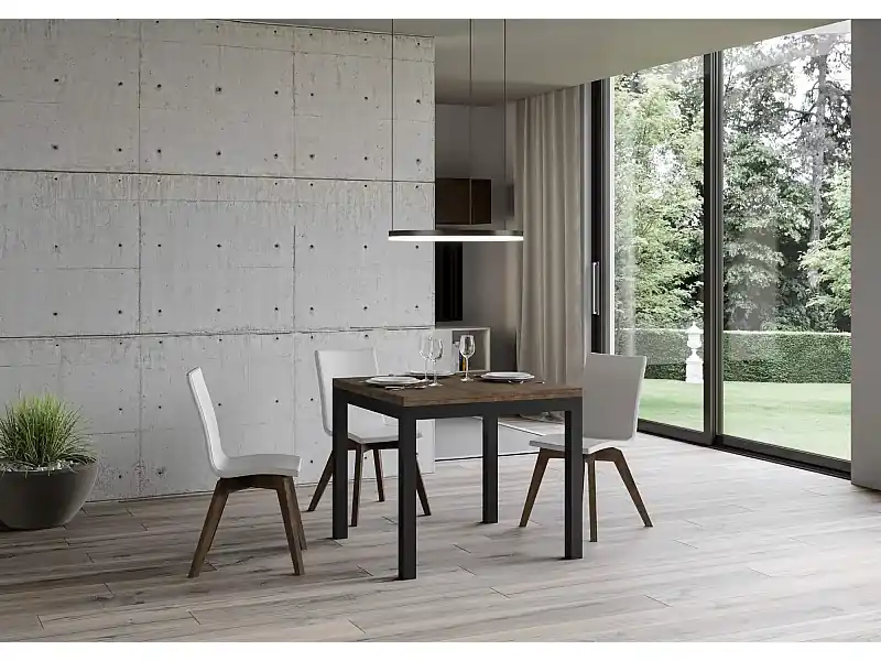 Ausziehtisch 90×90/180 cm Everyday Libra Nussbaum mit Eisenrahmen aus Anthrazit Bestseller
