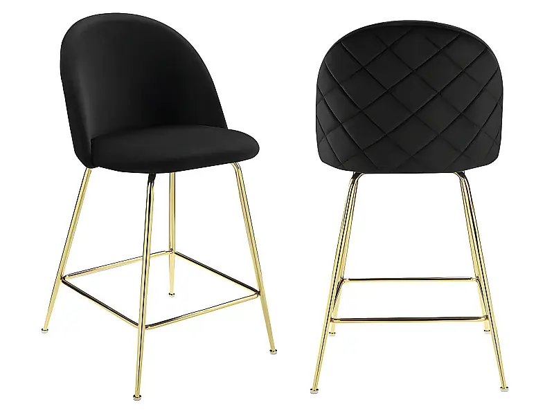 Barhocker 2er-Set – Samt & goldfarbenes Metall – Schwarz – MELBOURNE Mega-Angebot