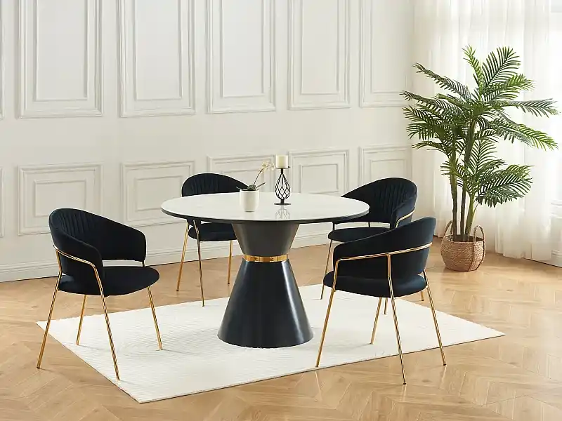 Bestpreis Stuhl 6er-Set – Samt & goldfarbenes Metall – Schwarz – MADOLIA von Pascal MORABITO