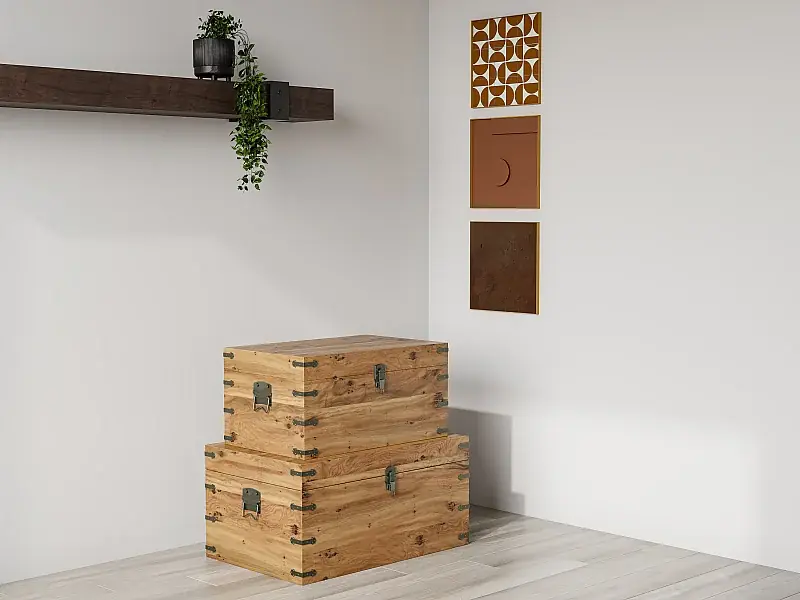 Gratis Versand 2er-Set Koffer – Tannenholz & MDF – 70 x 46 x 35 cm & 60 x 38 x 30 cm – Holzfarben – MALOUEN