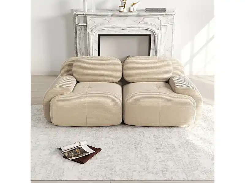 Neuheit Sofa 2-Sitzer Modular aus Rippvelours – mit 2 Kissen – 208x103x75cm – Beige