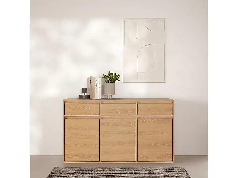 Sideboard Tori 3 Türen 3 Schubladen, Eichenfarbe, 140 cm Garantierte Lieferung