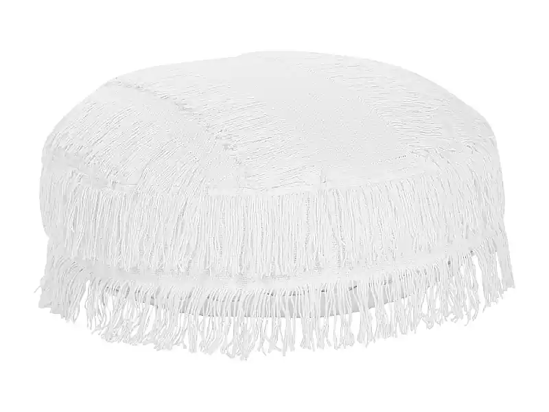 Solange Der Vorrat Reicht Pouf Baumwolle weiß geflochten mit Fransen rund ⌀ 50 cm Strickhocker Boho Oulad
