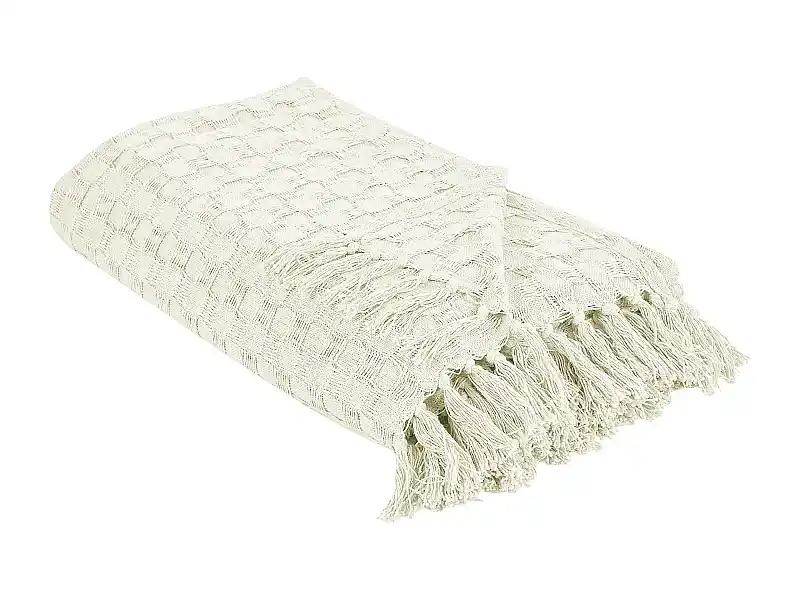 Sonderangebot Tagesdecke Baumwolle creme weiß 200×220 cm strukturiert mit Fransen modern Bere