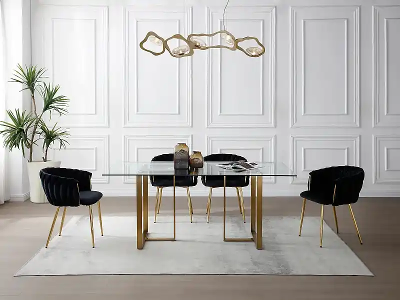 Top-Angebot Esstisch für 6 Personen – Sicherheitsglas & Edelstahl – Transparent & Goldfarben – NILESA II von Pascal Morabito
