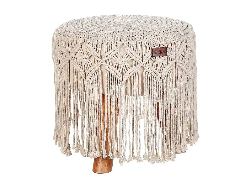 Top-Preis Hocker aus Baumwolle Holz beige 40 x 40 cm mit Makramee im Boho Stil Nawabad