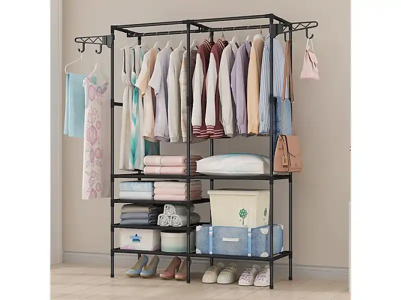 Wochenendangebot 4-in-1-Metallmehlhalter mit 6 Regalen, 2 Stangen und Haken, 108x36x170 cm