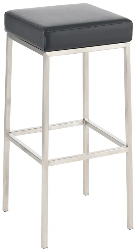 Der eckige Sitz des Tresenstuhls ist auch ohne Armlehnen und Rückenlehne bequem. Dafür sorgt die Polsterung, die mit pflegeleichten und langlebigem Kunstlederbezug versehen ist.