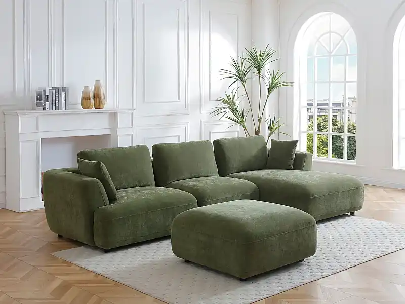 Zertifiziert Ecksofa – Ecke rechts – mit Hocker – Stoff – Grün – TINDRALO