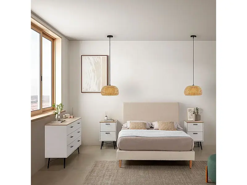 Zertifiziert Polsterbett Niebla 150×190 cm Beigefarbenes Schaffellimitat