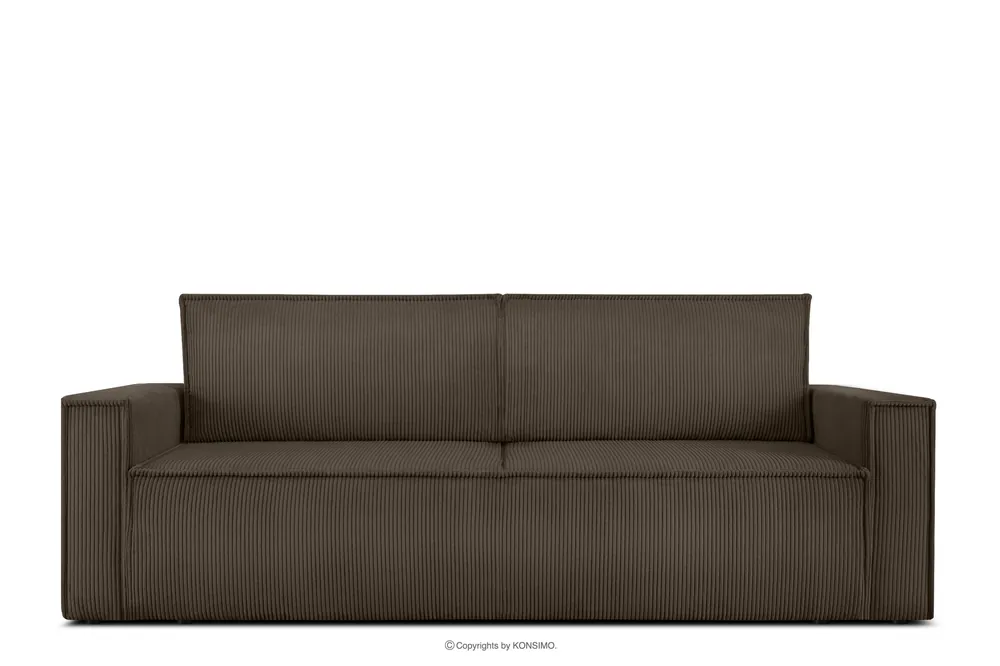 Das 3-Falt-Sofa Kordstoff braun ist ein Möbelstück im modernistischen Stil. Mit seinen charakteristischen breiten Seiten hebt es sich von der Masse der Standardmöbel ab. Aber das ist nur der Anfang seiner außergewöhnlichen Möglichkeiten. Die Kissen der Rückenlehne sind die perfekte Stütze für Ihren Rücken und sehen dank ihrer Größe auch noch gut aus.