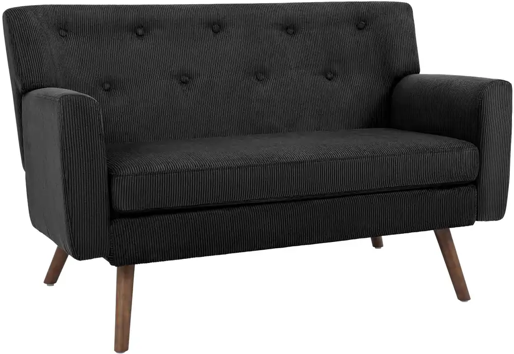 Der 2-Sitzer überzeugt mit einem strapazierfähigen und schicken Cordbezug in modischen Farben sowie mit stabilen Beinen aus Kautschukholz. Die Rückenlehne steigert den Sitzkomfort zusammen mit der dicken Polsterung erheblich (Schaumstoff 25 kg/m³).