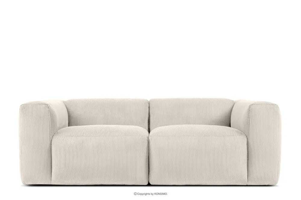 Das modulare Zweisitzer-Sofa aus cremefarbenem Kordstoff wird mit Sicherheit zum Mittelpunkt eines jeden Wohnzimmers. Das Gestell ist aus langlebigem Kiefern- und Buchenholz gefertigt, das nicht nur für Stabilität, sondern auch für Ästhetik sorgt. Darüber hinaus erhöht die Verwendung von langlebigen Span- und Faserplatten die Stabilität und Langlebigkeit des Möbels. So bleiben sie auch bei intensiver Nutzung formstabil und widerstandsfähig gegen alle Herausforderungen des täglichen Lebens.